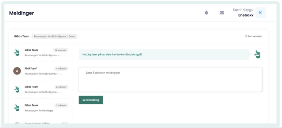 Gibbs beskedsystem gør det muligt for brugere at kommunikere direkte med hinanden i bookingsystemet. Dette kan fx være nyttigt, hvis en kunde har spørgsmål til en leverandør om en ordre, eller hvis en leverandør ønsker at give information til kunden om et arrangement eller en aktivitet. Beskederne sendes og modtages i realtid, og brugere kan også modtage notifikationer, når de modtager en ny besked. Dette er med til at gøre kommunikationen mere effektiv og giver bedre kundeoplevelser.