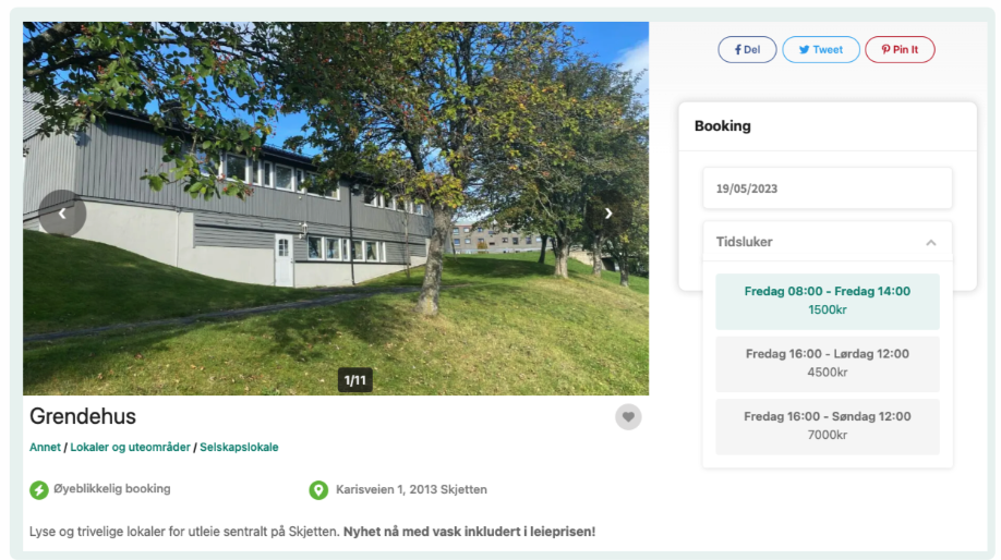 Tidsrumsbaseret leje har foruddefinerede tidspunkter for leje. Udlejer indtaster, hvilke tidsrum der er ledige for booking, og lejer vælger herefter den ønskede dato og ledige tider.