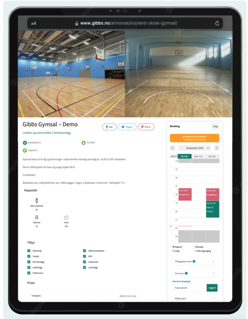 Timeleje er velegnet til forskellige typer udlejningsejendomme, såsom idrætsfaciliteter, selskabslokaler, mødelokaler, udstyr, udearealer og frivilligcentre. Kunden kan leje lejeobjekter i 15 minutter eller flere sammenhængende dage, men det afhænger af åbningstiderne. For lejeperioden kan der fastsættes et minimum antal dage og et maksimum antal timer. Lejeobjekter kan også opdeles i baner eller sektioner og prissættes i procent af totalen
