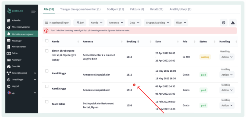 Det aldri oppstå konflikter når leietakeren selv booker gjennom bookingsystemet, da det ikke vil være mulig å sende en forespørsel på en allerede reservert tid. Det er derimot viktig å være oppmerksom på muligheten for dobbelbooking når utleieren gjør manuelle endringer.