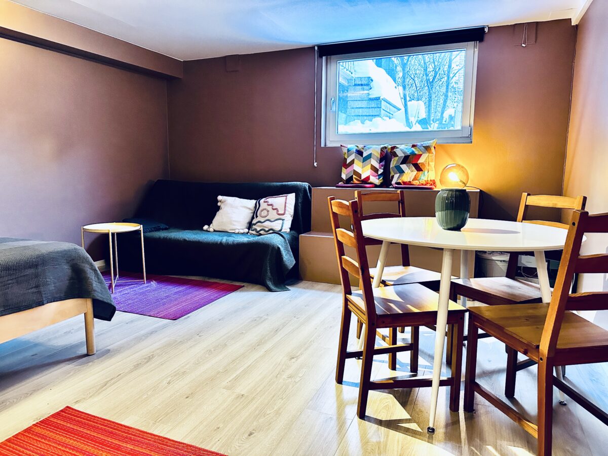 Vår gjestehybel er et behagelig fellesrom som er tilgjengelig for utleie eksklusivt til beboere og deres gjester i Borettslaget Heimdal II, med en grense på maksimalt 6 netter per booking. Hybelen, som nylig har blitt oppusset, ligger i kjelleren av Heimdalsgata 37. Du finner den ved å gå ned kjellertrappen, ta til høyre og så første dør til venstre, markert med «Gjestehybel».